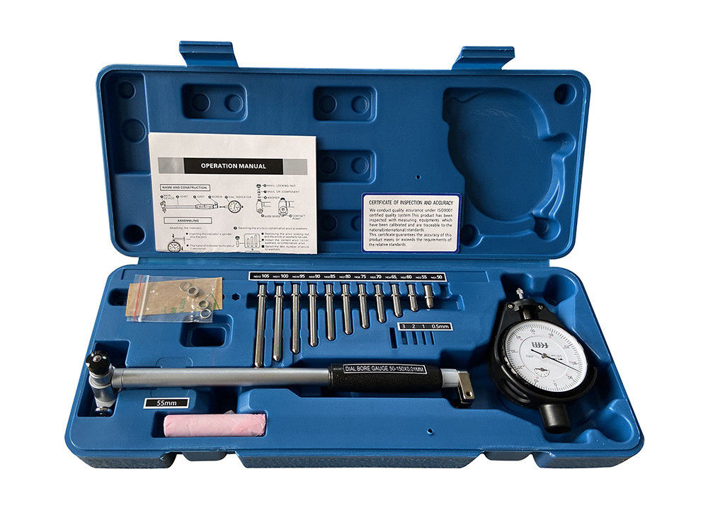 Each bore gauge comes complete with dial indicator, measuring extended heads, inserting anvils, and adjusting washers.